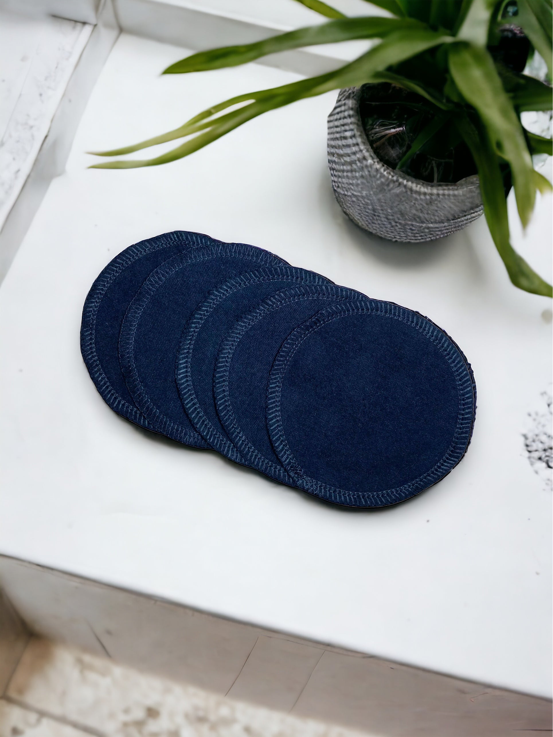 A bundle of five reusable Organic Cotton facial rounds. They are gentle and absorbent, perfect for facial cleansing and toner application.